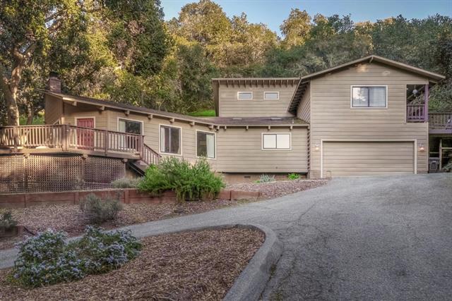 Exceptional county home tucked back in Corral De Tierra among beautiful oak trees sprawled across three plus acres. Located in close proximity to Washington Union Elementary and other coveted schools with easy access to Highway 68, this three bedroom, two bathroom home is waiting for you! Open concept living with beautiful vaulted wood beam ceilings, large stone fireplace and a spacious kitchen with breakfast bar and dining area. Upstairs are three large bedrooms with high ceilings along with loft nooks located in both of the secondary bedrooms. Great master bedroom with vaulted ceilings, a walk-in closet and access to outside. Soak up the sunshine or entertain on two large decks located on the front and back of the home. An additional large flat parcel ideal for a possible shop, barn, or animals!